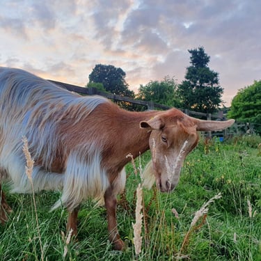 Breeding ~ we chose the Golden Guernsey as they are on the Rare Breed Survival Trust list of endangered breeds. We breed for health, temperament & to be fit for function, conformation & to be true to type.We also don't breed every year so they can rest after having kids and we enjoy their company long into their retirement.